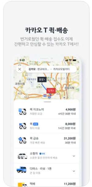 - 퀵배송: 간편한 소형 물품 배송