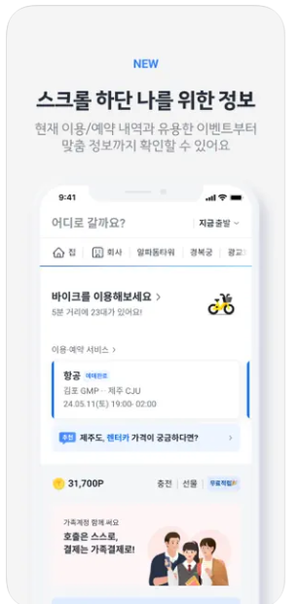 - 자전거 및 킥보드: 지도 내에서 쉽게 탐색 및 대여